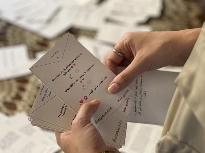 In 2025, people from all over the world sent 2,500 messages of solidarity to be delivered to families in Gaza alongside food parcels. But throughout the year, access restrictions, severe insecurity, and obstructions on the entry of humanitarian aid prevented us from reaching you safely and consistently. We had to adapt. Now, we have transformed these messages into a digital archive because Hope for Gaza was never about asking the world to look at Gaza from afar; it was always about bringing the world closer to Gaza. Over the next few months, our teams will continue to upload your messages until all 2,500 are preserved.
